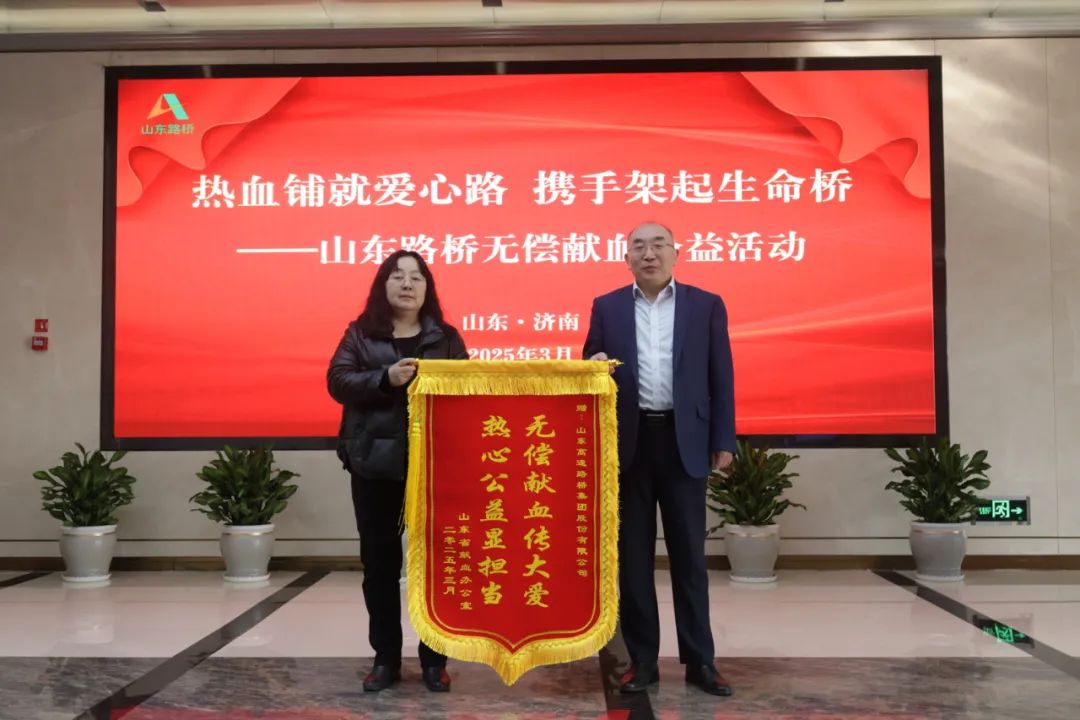 活動中,省獻血辦公室主任王淑榮向公司黨委委員、工會主席張子鑫送上錦旗,對公司大力支持山東省無償獻血事業(yè)表示感謝。此次活動充分踐行了山東路橋人的初心使命,廣大職工用實際行動支持和參與愛心獻血事業(yè),以熱血傳遞溫暖,用奉獻詮釋擔當,充分彰顯了國有企業(yè)社會責任。